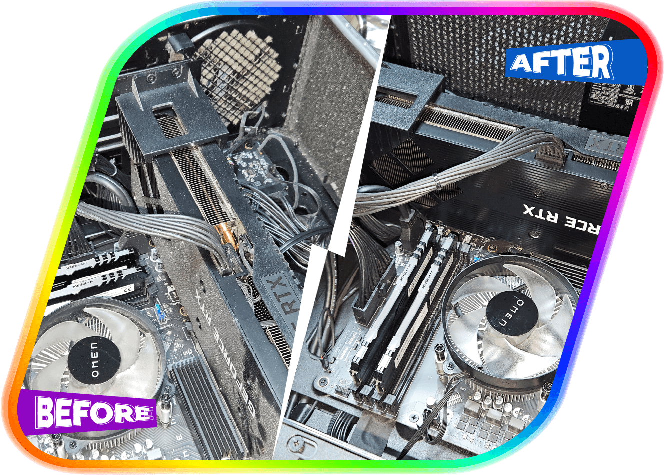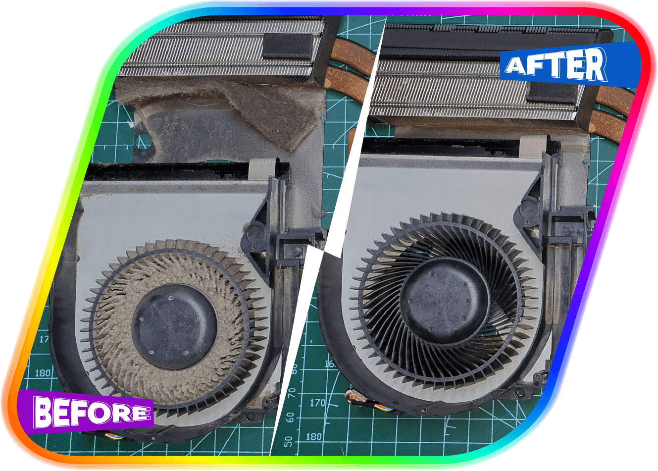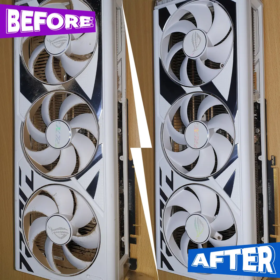 For desktop PCs, we individually clean each fan blade and reach into all the nooks and crannies. For laptops, we use fine brushes to remove dust and debris from beneath the keyboard keys.